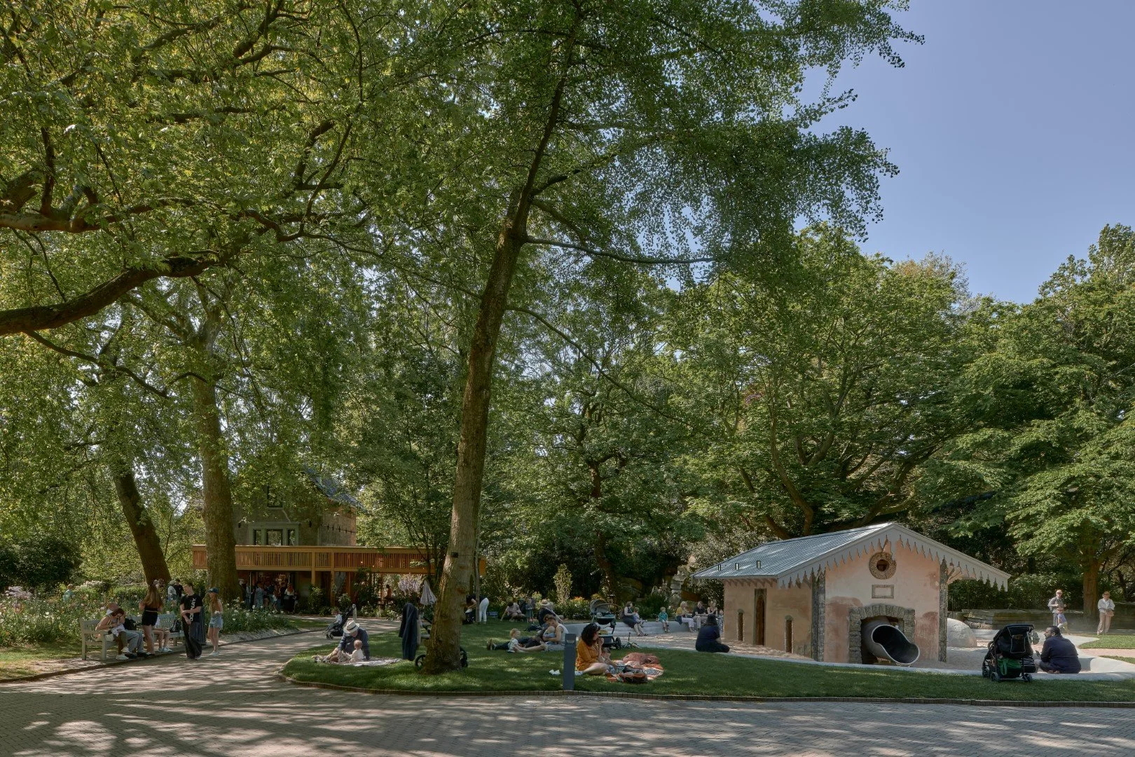 Samen met de herbestemming van het Duivenhuis vormt de nabijgelegen Moeflonstal een nieuw ensemble binnen Artis. Waar voorheen twee onopvallende en vervallen monumenten stonden, is een betekenisvolle plek ontstaan waar ontmoeten en spelend leren samenkomen.